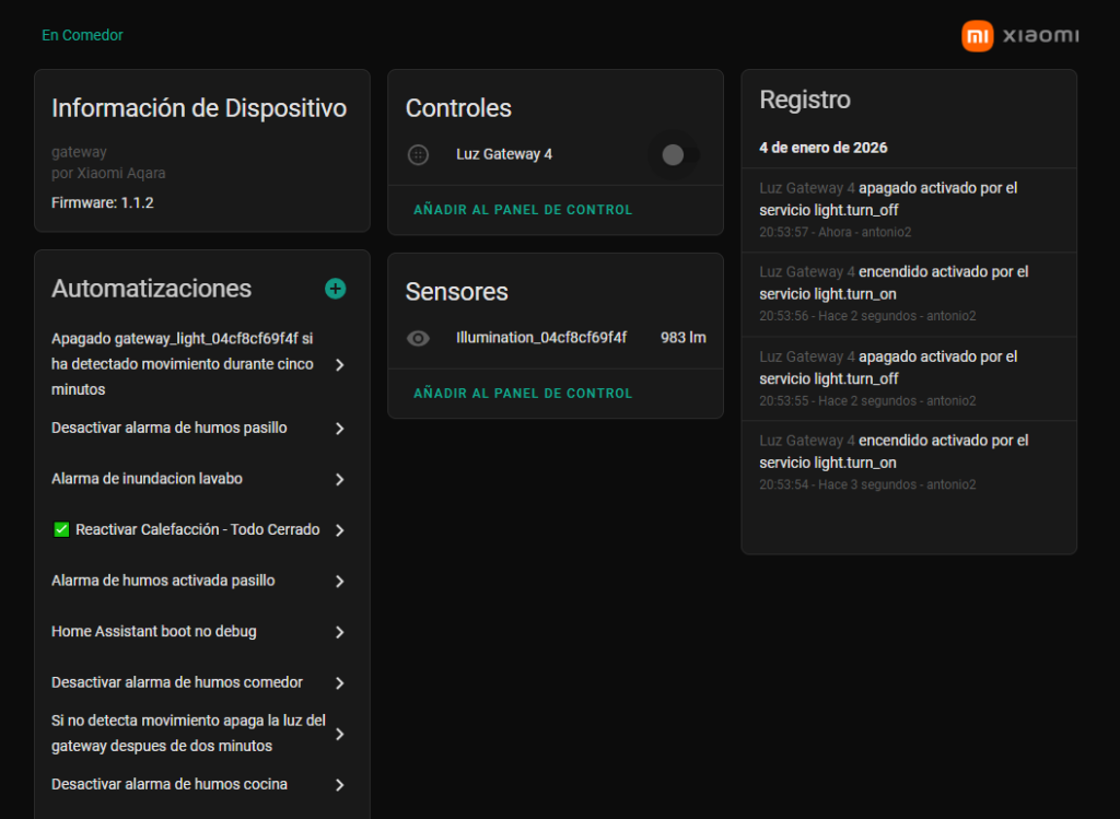 Ya nos aparece el dispositivo con su MAC, en este caso seria light.gateway_light_04cf8cf69f4f
