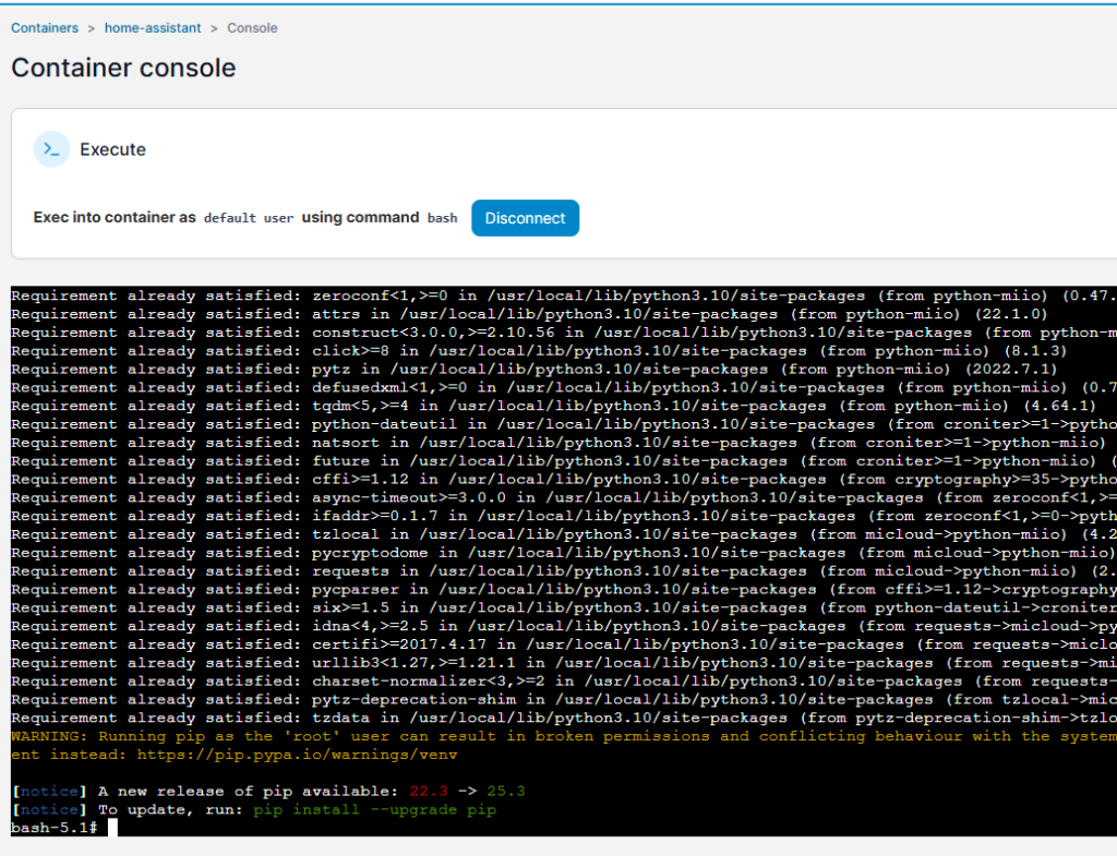 Para ahorrarme problemas de versiones de Python y demás tonterias lo instalare en el docker de mi Home Assistant